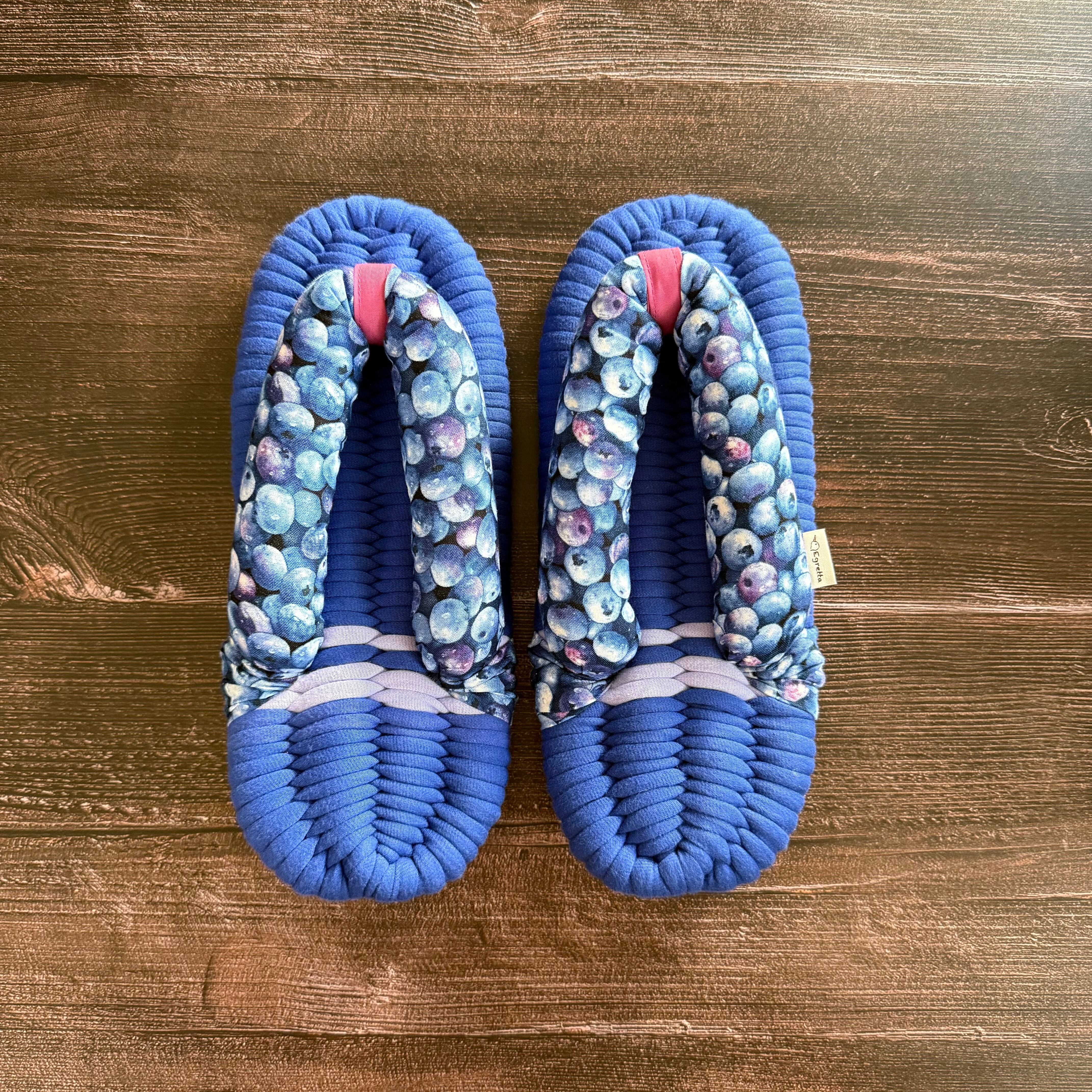 エグレッタの布ぞうりは、個性的で色鮮やかなUSAコットンで作られたふっくら鼻緒と、しっかりとした底の厚みが特徴の室内用布ぞうりです。