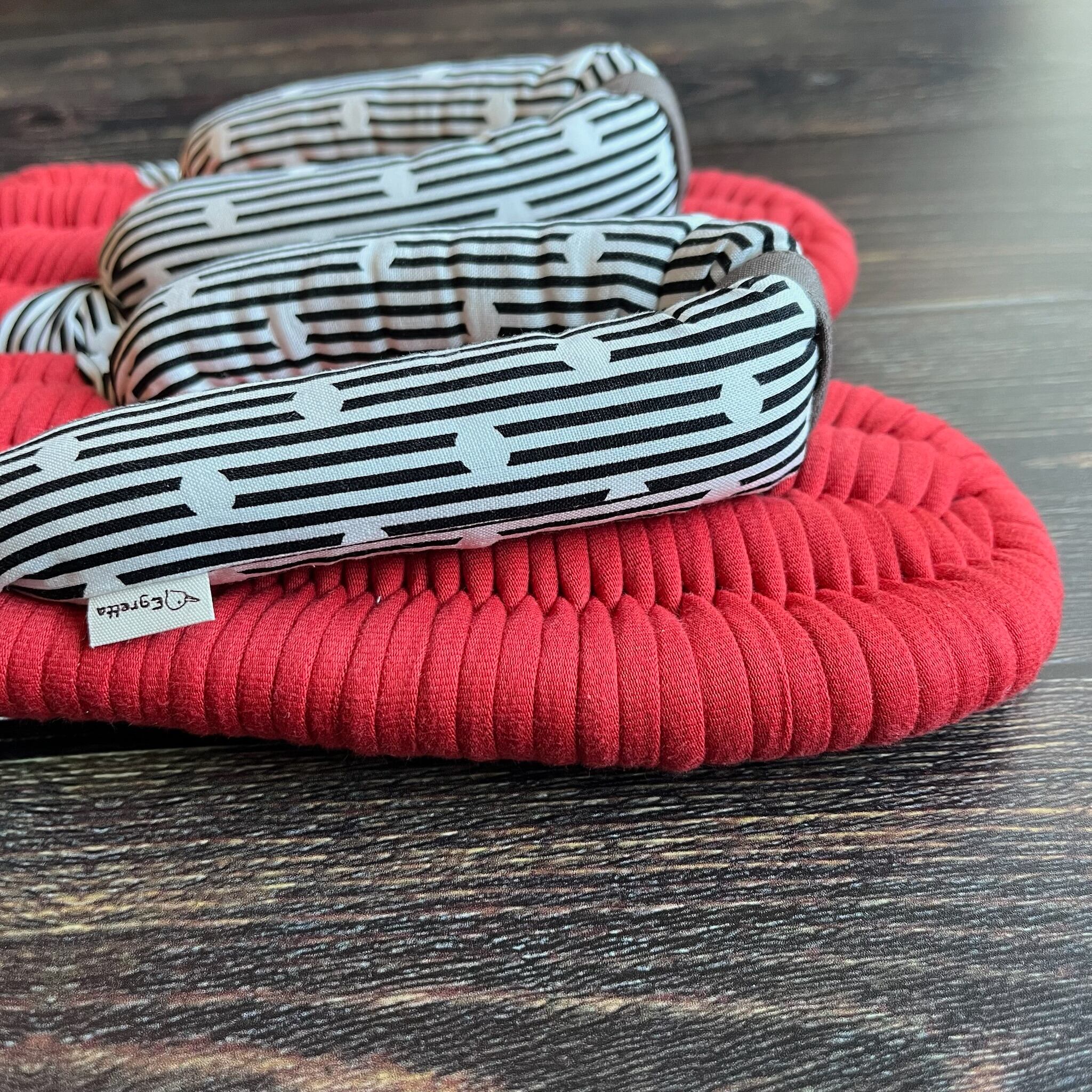 エグレッタの布ぞうりは、個性的で色鮮やかなUSAコットンで作られたふっくら鼻緒と、しっかりとした底の厚みが特徴の室内用布ぞうりです。