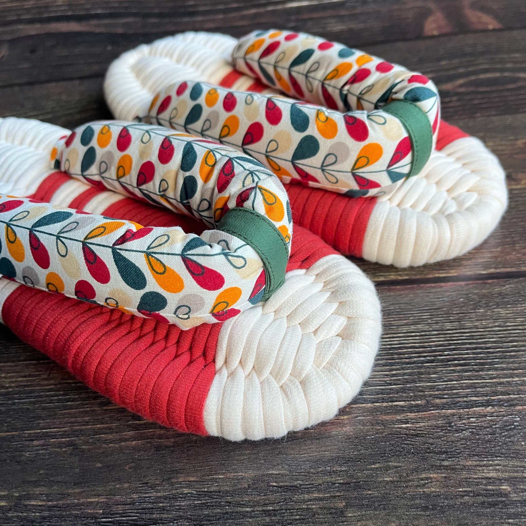 鼻緒には、フランスにて1987年創業し、インテリア生地を得意としているmfta社の上質な綿を用いました。カラフルなリーフが連なる柄は、フランスらしい配色がパッと目を引くデザインです。